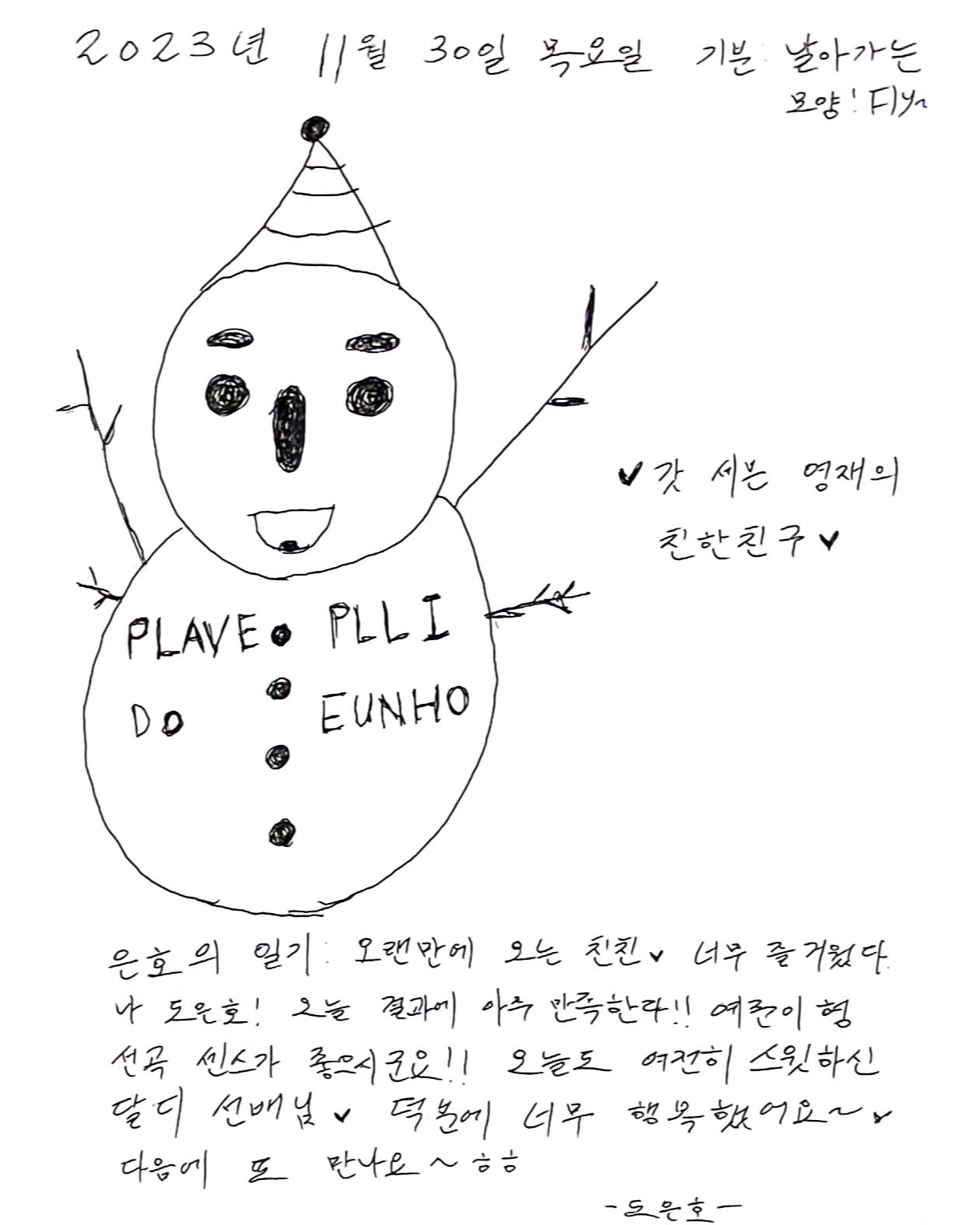 2023๋ 11์ 30์ผ ๋ชฉ์์ผ / ๊ธฐ๋ถ: ๋ ์๊ฐ๋ ๋ชจ์! Fly~
